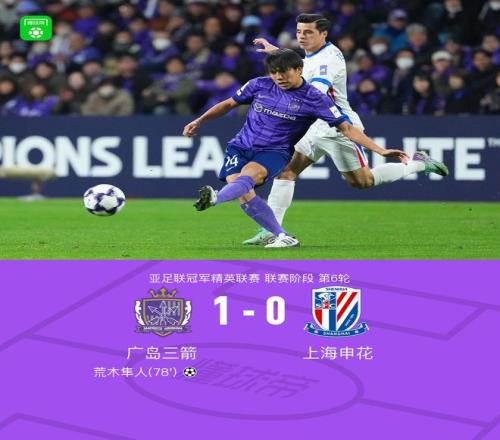 北京时间12月10日亚足联冠军精英联赛联赛阶段第6轮,广岛三箭对阵上海申花。上半场,安德烈-路易斯错失良机,随后中柱,下半场,荒木隼人头球破门。最终比分广岛三箭1-0战胜上海申花。