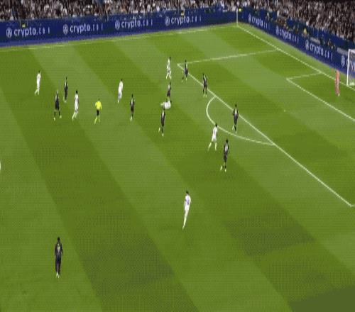第17分钟,皇家马德里获得前场位置不错定位球,罗德里戈送出精准长传,吕迪格头球攻门稍稍高出横梁!